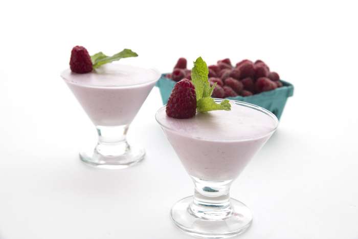 Drizzle the cooled raspberry mixture over the coconut cream, beating on low until well combined. Spoon into 4 dessert cups and refrigerate until firm, about 1 hour.