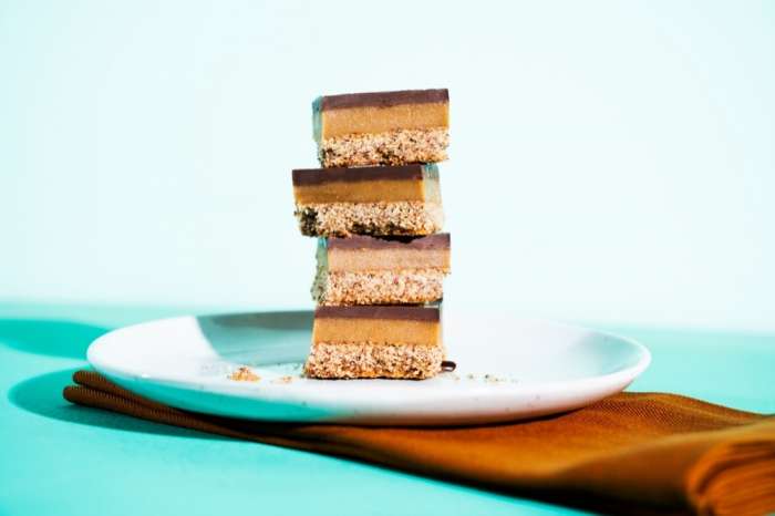 Melt chocolate and coconut oil in a microwave-safe bowl in 30-second increments, stirring each after each turn in the microwave. Repeat until chocolate is completely melted and smooth. Pour onto the cooled caramel layer. Gently shake the pan from side to side to help it spread.