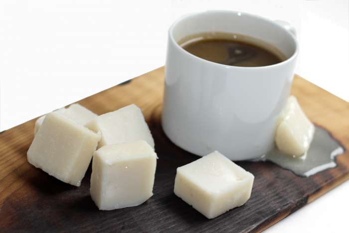 Let freeze for 30 minutes. Pop out individual cubes, and place in small bowl- set aside in refrigerator, and on an as needed basis, place one cube in a cup of hot coffee