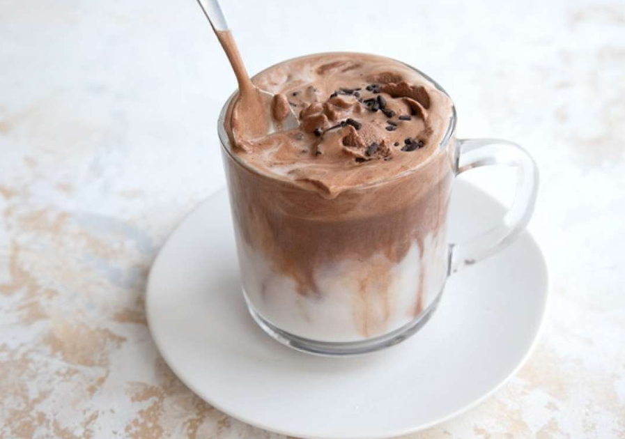 Allow the heat of the milk to melt the chocolate whipped cream and stir until well combined.